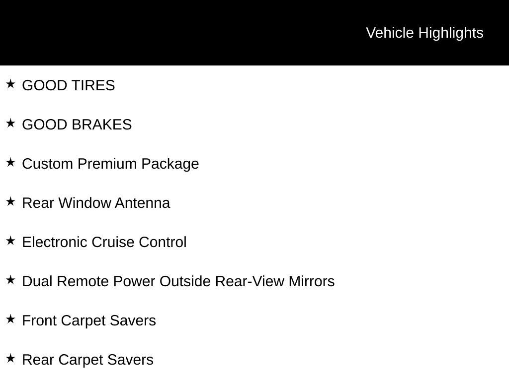 - Body Style: 4dr Sdn Custom