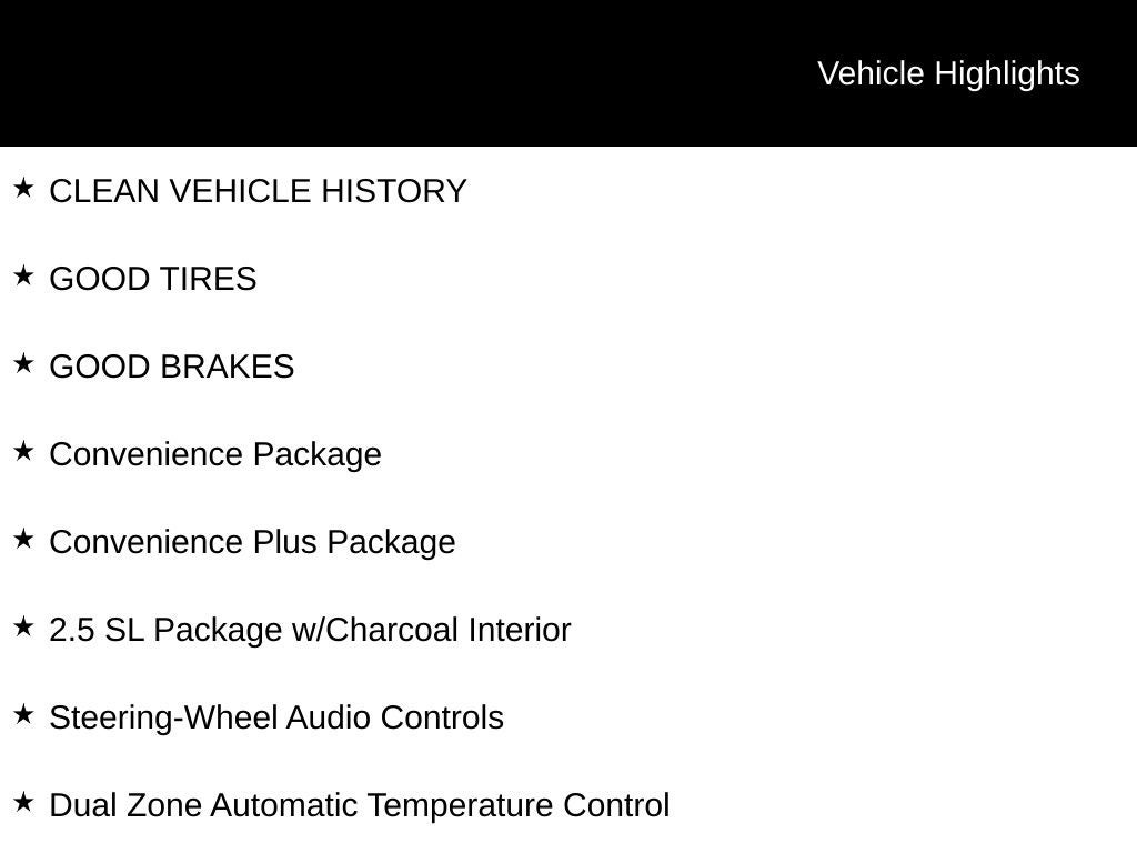 • 2.5 SL Package with Charcoal Interior