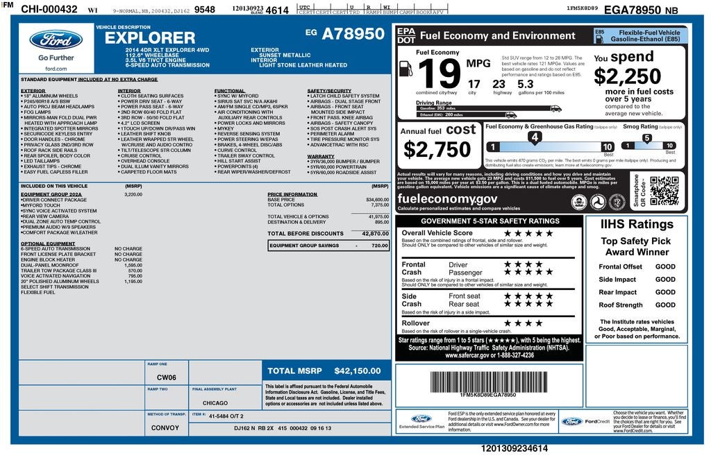 - Fuel Economy Est-Combined (MPG): 19