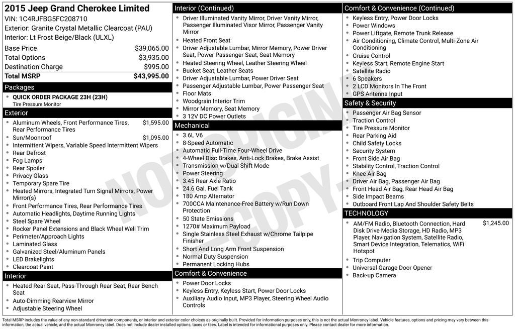 Granite Crystal Metallic Clearcoat 2015 Jeep Grand Cherokee Limited 4D Sport Utility 4WD 8-Speed Automatic 3.6L V6 24V VVT