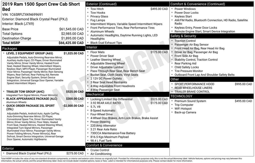 Diamond Black Crystal Pearlcoat 2019 Ram 1500 Rebel 4D Crew Cab 4WD 8-Speed Automatic HEMI 5.7L V8 Multi Displacement VVT