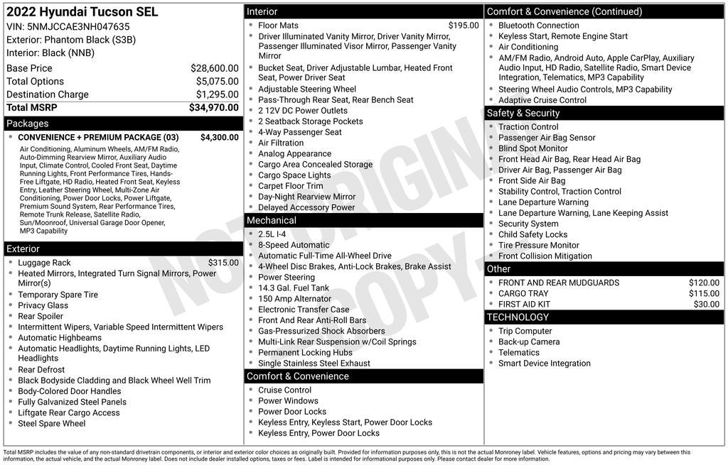 Phantom Black 2022 Hyundai Tucson SEL 4D Sport Utility AWD 8-Speed Automatic with SHIFTRONIC 2.5L I4 DGI DOHC 16V LEV3-ULEV70 187hp
