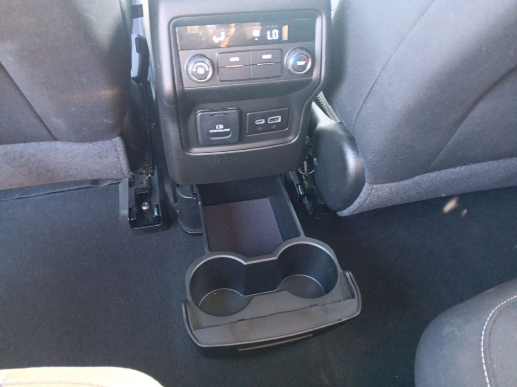 - Console, front center with 2 cup holders and storage, includes rear storage drawer