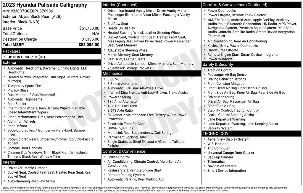 Boasting a stunning Black exterior, the Palisade Calligraphy commands attention on the road. Its bold, commanding presence is complemented by a suite of premium features, including: