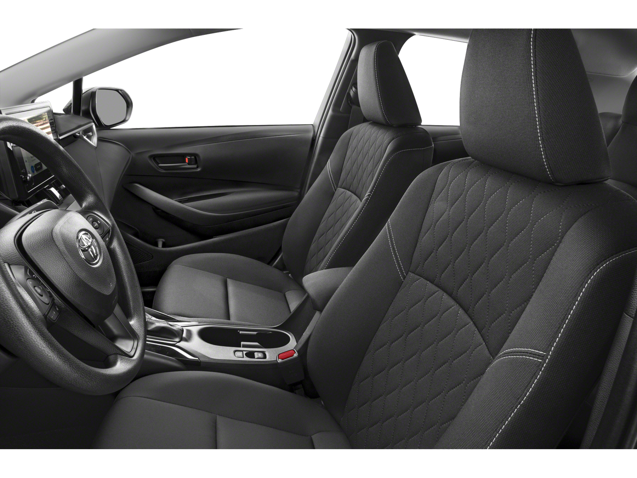 The interior of the Corolla LE is designed with your comfort in mind. Sink into the premium fabric seats and enjoy the convenience of the split-folding rear seat, perfect for accommodating your cargo needs. The tilt and telescoping steering wheel, along with the driver's vanity mirror, ensure a personalized driving experience.